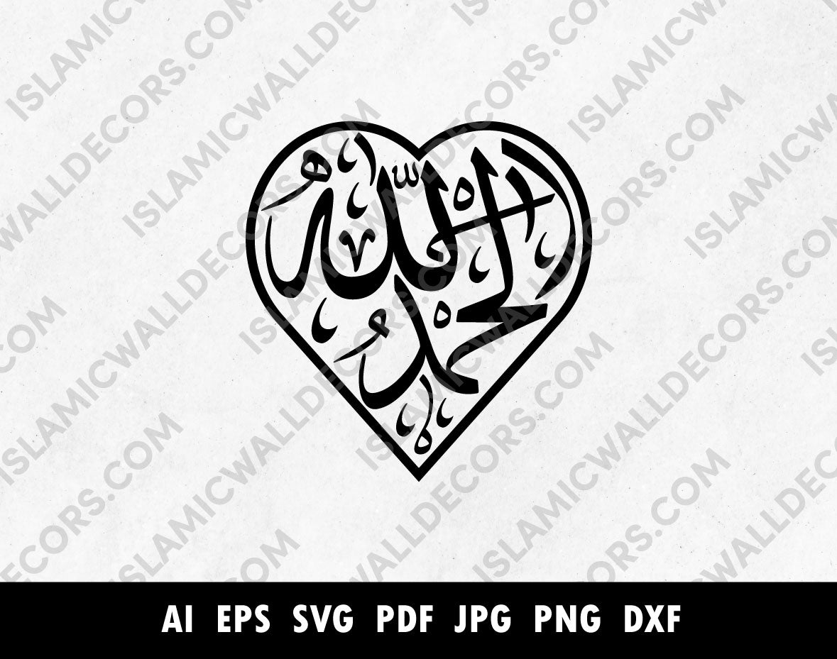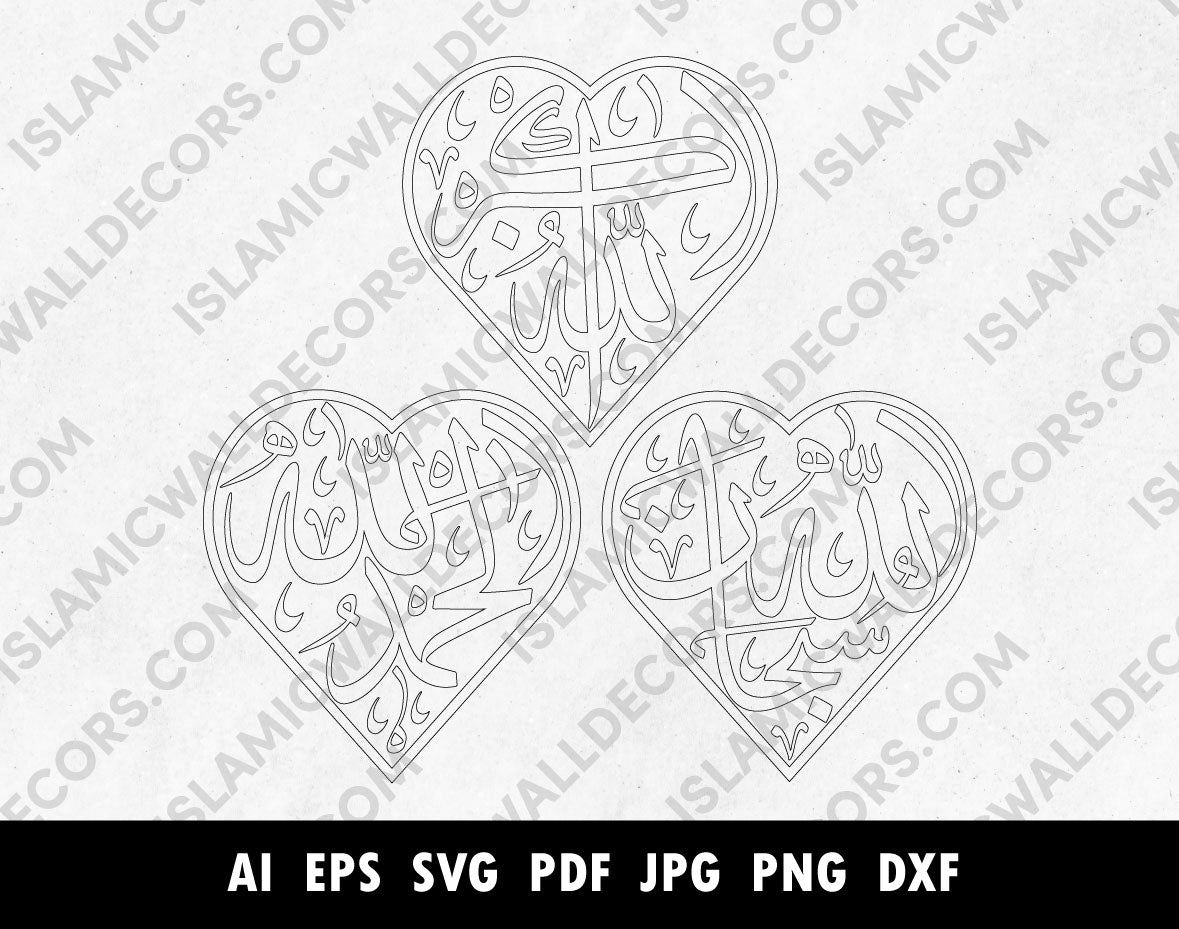 Subhan Allah Alhamdulillah Allahu Akbar Heart Shape Arabic Calligraphy vector, Dhikr Pdf PNG SVG file, Islamic wall art, Laser cutting files